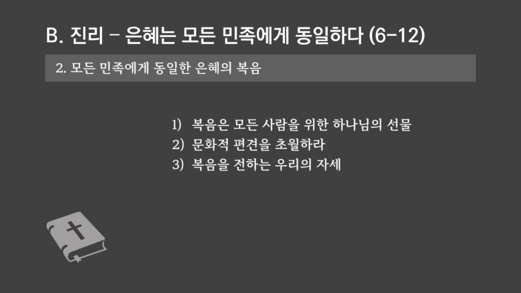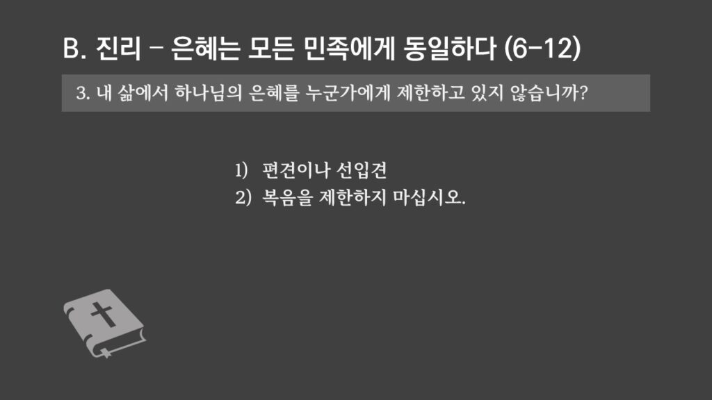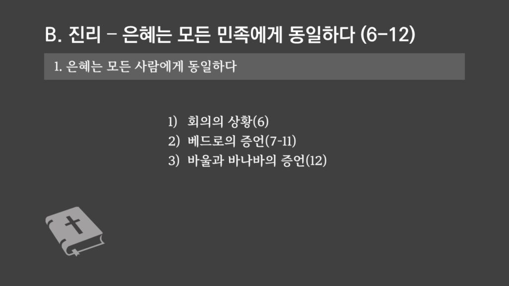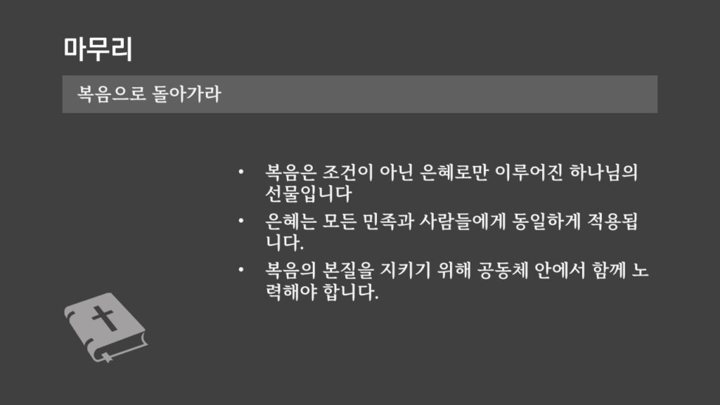 주일설교복음은 은혜입니다 제목 : 복음은 은혜입니다. 성경 : 사도행전 15:1-21 설교 : 박상도 목사 https://sheffieldkoreanchurch.org/wps/wp-content/uploads/2025/01/250119_sermon.mp3 PrevPrevious모든 민족을 구원하시는 하나님 Next순적함도, 어긋남도 하나님의 섭리Next연관설교 두려워하지 말고, 말하며 침묵하지 말라 16/03/2025 하나님께서 예비하신 동역자와 복음의 열매 09/03/2025 알지 못하던 하나님을 전하라 02/03/2025 말씀을 전할 때, 반응은 다를 수 있다 23/02/2025 고난 속에서도 찬양할 때, 하나님의 역사가 일어난다 16/02/2025