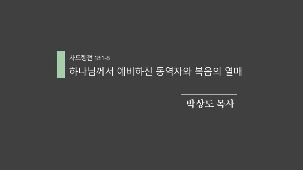 주일설교하나님께서 예비하신 동역자와 복음의 열매 제목: 하나님께서 예비하신 동역자와 복음의 열매 성경: 사도행전 18:1-8 설교: 박상도 목사 https://sheffieldkoreanchurch.org/wps/wp-content/uploads/2025/03/250309_sermon.mp3 PrevPrevious알지 못하던 하나님을 전하라 Next두려워하지 말고, 말하며 침묵하지 말라Next연관설교 두려워하지 말고, 말하며 침묵하지 말라 16/03/2025 알지 못하던 하나님을 전하라 02/03/2025 말씀을 전할 때, 반응은 다를 수 있다 23/02/2025 고난 속에서도 찬양할 때, 하나님의 역사가 일어난다 16/02/2025 복음이 임할 때, 변화가 시작된다. 09/02/2025