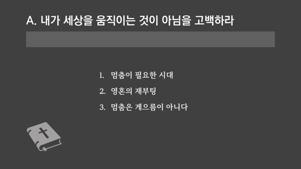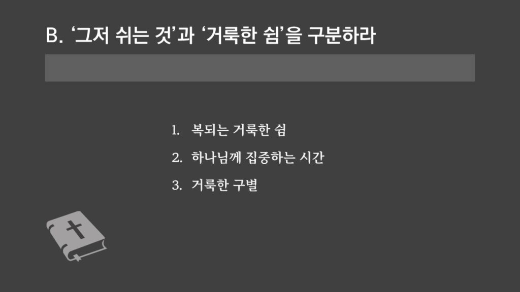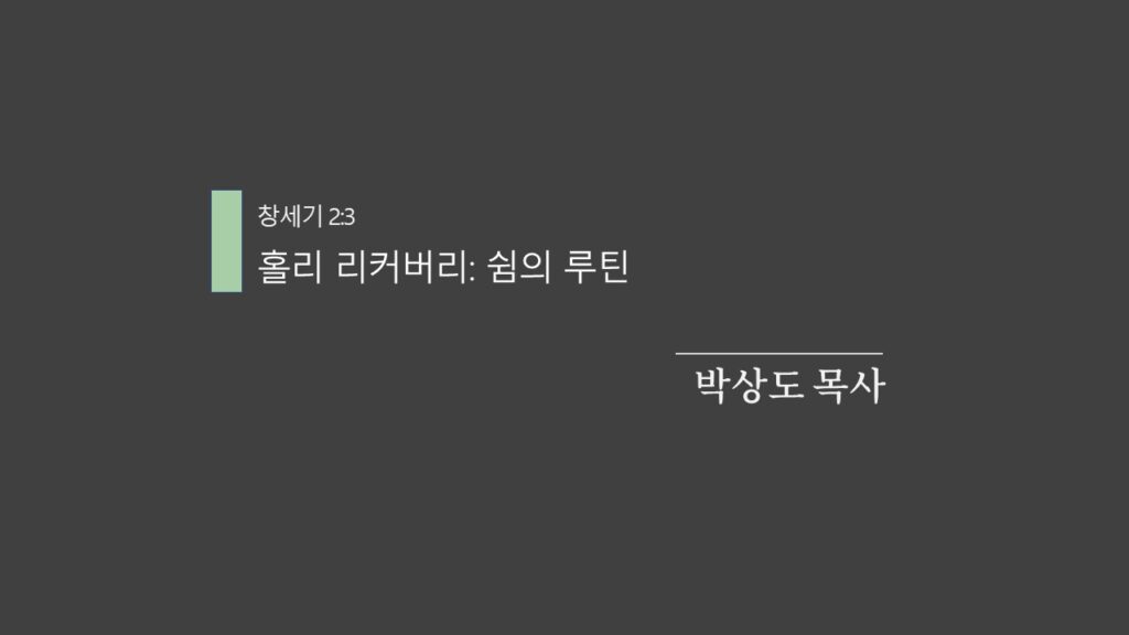 주일설교홀리 리커버리: 쉼의 루틴 제목: 홀리 리커버리 – 쉼의 루틴 성경: 창세기 2:3 설교: 박상도 목사 https://sheffieldkoreanchurch.org/wps/wp-content/uploads/2026/02/260222_sermon.mp3 PrevPrevious홀리 머니: 재정의 루틴 Next안전지대를 떠나는 용기Next연관설교 안전지대를 떠나는 용기 01/03/2026 홀리 머니: 재정의 루틴 15/02/2026 홀리 워드 : 말의 루틴 08/02/2026 홀리 모닝 01/02/2026 막막한 인생, 하나님이 찾아오시다 23/11/2025