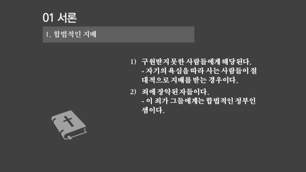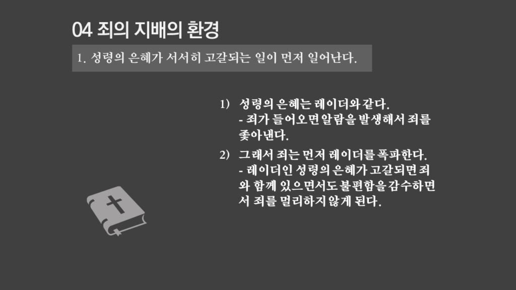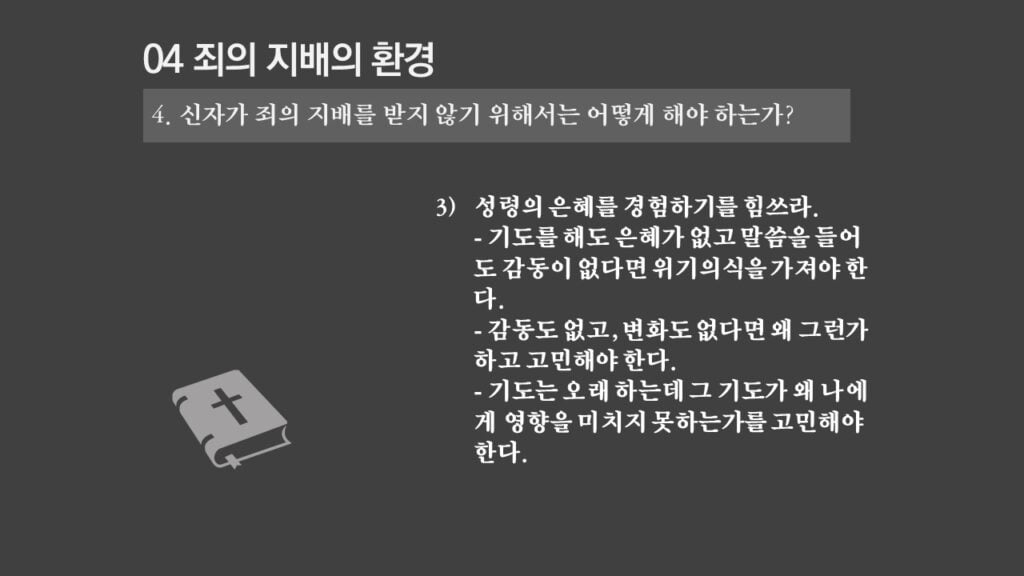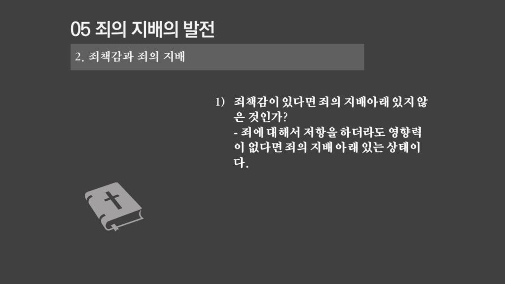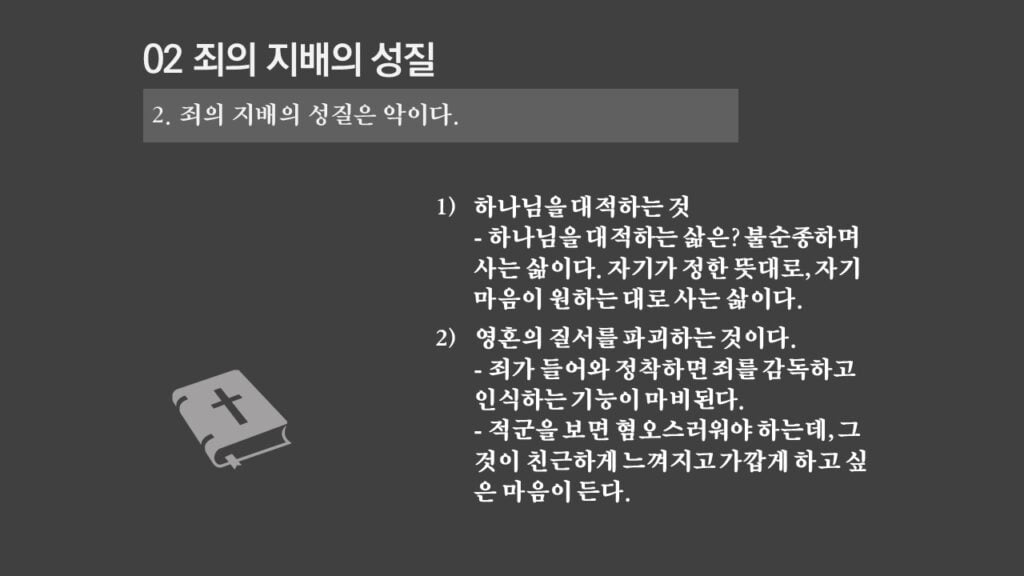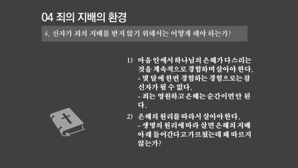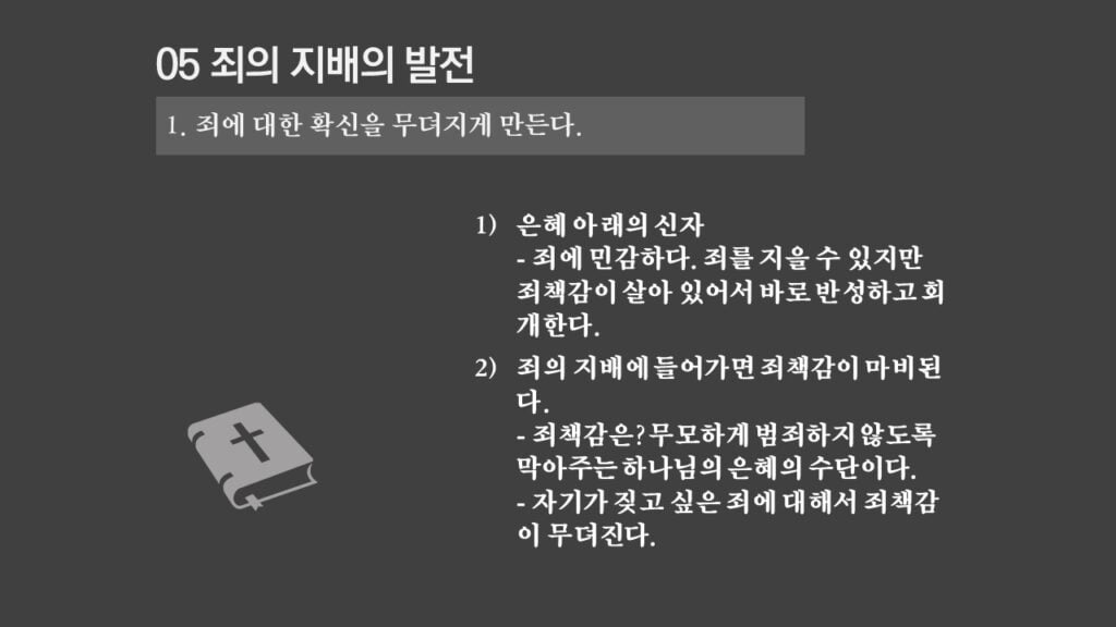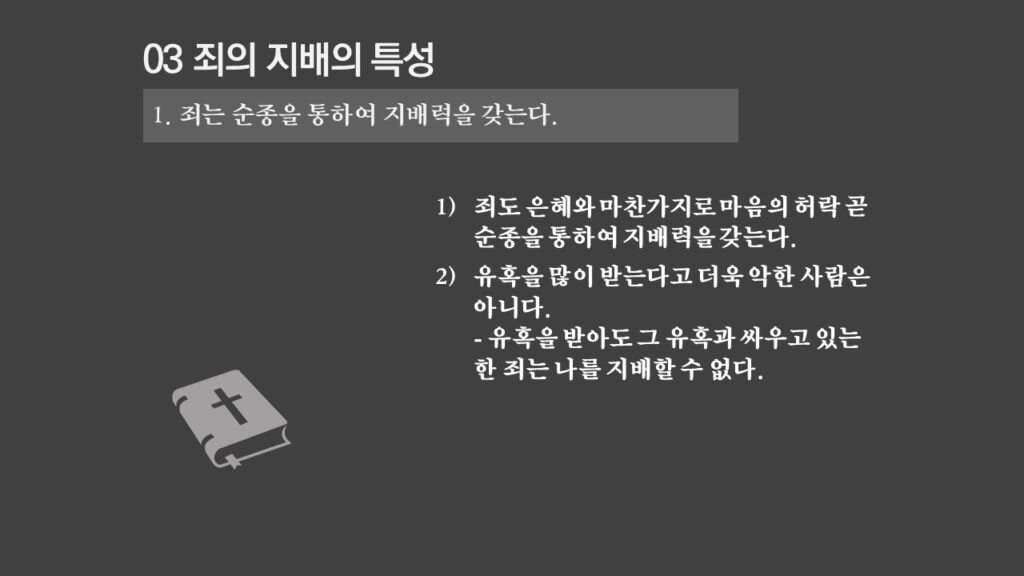 주일설교[은혜가 지배하는 삶으로 2] 죄의 지배는 무엇인가? 제목 : 죄의 지배는 무엇인가? 성경 : 로마서 6:14절 설교 : 박상도 목사 https://sheffieldkoreanchurch.org/wps/wp-content/uploads/2022/02/220213_sermon.mp3 PrevPrevious[은혜가 지배하는 삶으로 1] 생명의 원리 Next[은혜가 지배하는 삶으로 3] 죄의 지배아래에 있는가?Next연관설교 그리스도와 함께 살기 31/03/2024 [하나님과 구원 07] 구속과 십자가 27/11/2022 [은혜가 지배하는 삶으로 6] 혼란을 이겨내자 13/03/2022 [은혜가 지배하는 삶으로 5] 죄가 우리를 지배하지 못함 06/03/2022 [은혜가 지배하는 삶으로 4] 은혜가 지배하는 삶으로 들어가기 위해서 해야 할 일 27/02/2022