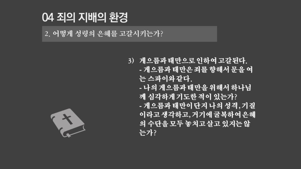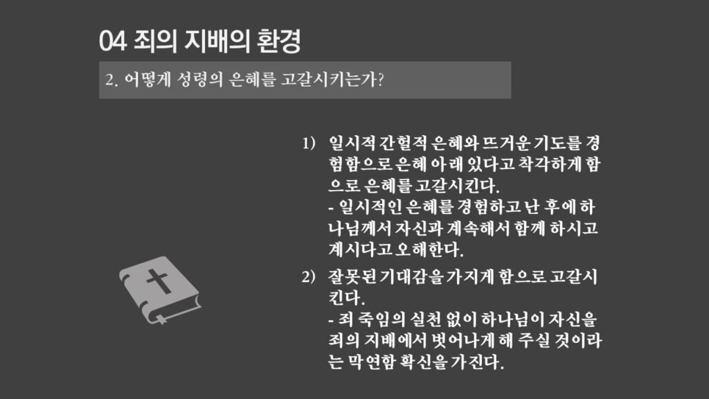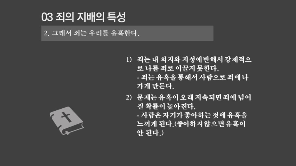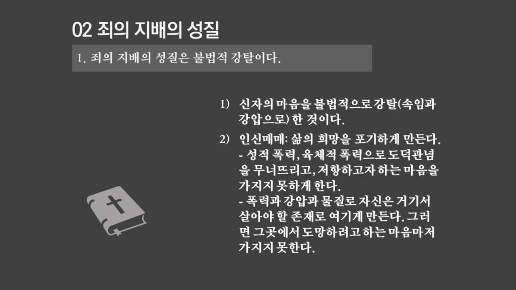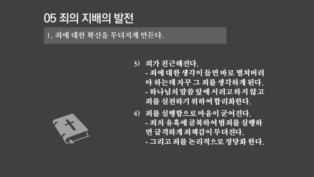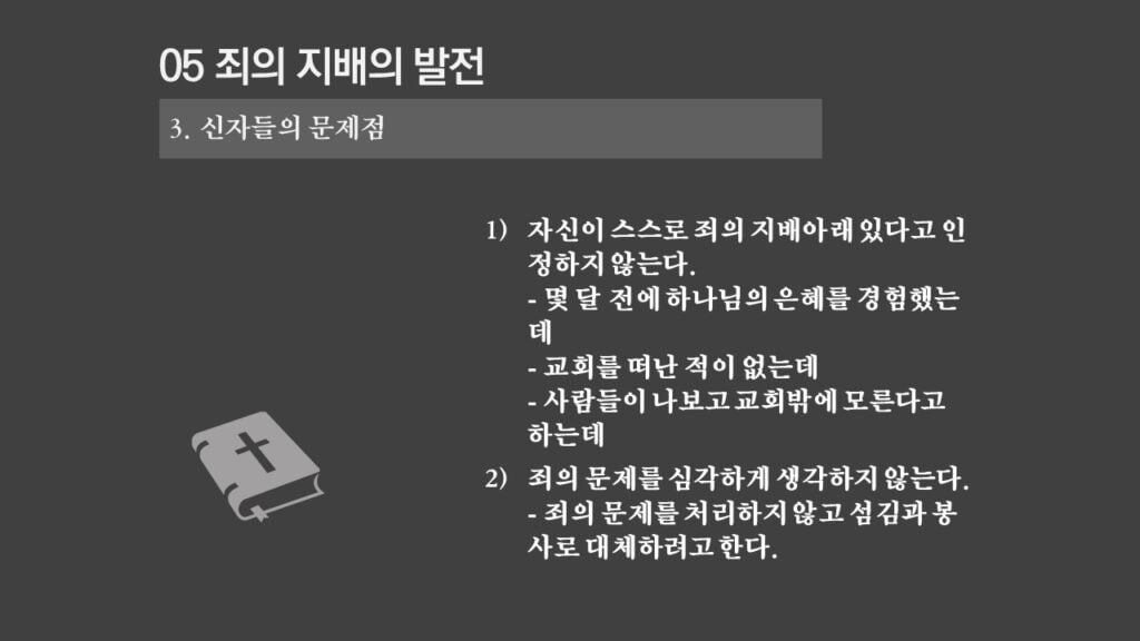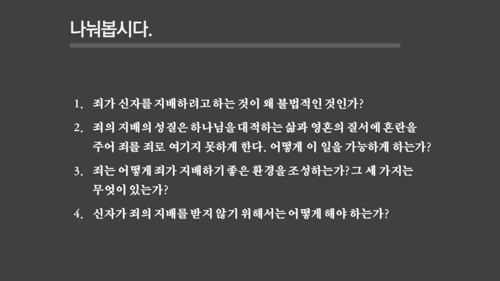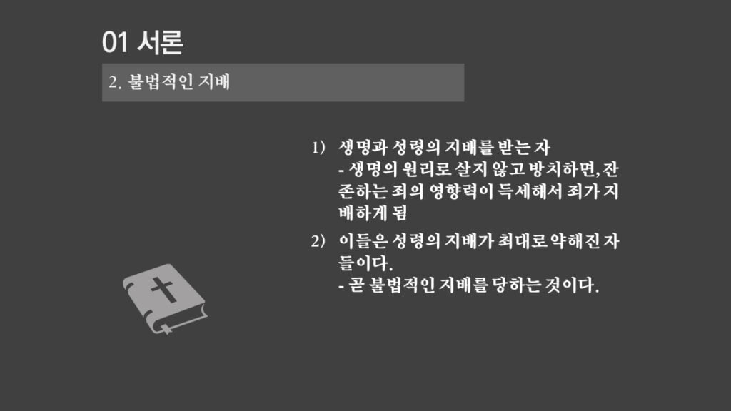 주일설교[은혜가 지배하는 삶으로 2] 죄의 지배는 무엇인가? 제목 : 죄의 지배는 무엇인가? 성경 : 로마서 6:14절 설교 : 박상도 목사 https://sheffieldkoreanchurch.org/wps/wp-content/uploads/2022/02/220213_sermon.mp3 PrevPrevious[은혜가 지배하는 삶으로 1] 생명의 원리 Next[은혜가 지배하는 삶으로 3] 죄의 지배아래에 있는가?Next연관설교 그리스도와 함께 살기 31/03/2024 [하나님과 구원 07] 구속과 십자가 27/11/2022 [은혜가 지배하는 삶으로 6] 혼란을 이겨내자 13/03/2022 [은혜가 지배하는 삶으로 5] 죄가 우리를 지배하지 못함 06/03/2022 [은혜가 지배하는 삶으로 4] 은혜가 지배하는 삶으로 들어가기 위해서 해야 할 일 27/02/2022