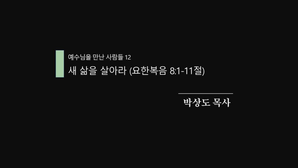주일설교[예수님이 만난 사람들 12] 새 삶을 살자 제목 : 새 삶을 살자성경 : 요한복음 8:1-11절설교 : 박상도 목사 https://sheffieldkoreanchurch.org/wps/wp-content/uploads/2023/01/230101_sermon.mp3 PrevPrevious[성탄절] 우리가 기다리던 선물 Next[예수님이 만난 사람들 13] 온전히 회복시키시는 주님Next연관설교 관계 리셋: ‘인맥‘을 넘어 ’공동체‘로 25/01/2026 신분 리셋: ‘스펙’의 노예에서 ‘하나님의 자녀’로 04/01/2026 십자가와 부활: 참된 영광 05/10/2025 돌을 옮겨 놓으라 28/09/2025 부활과 생명 앞에서 21/09/2025