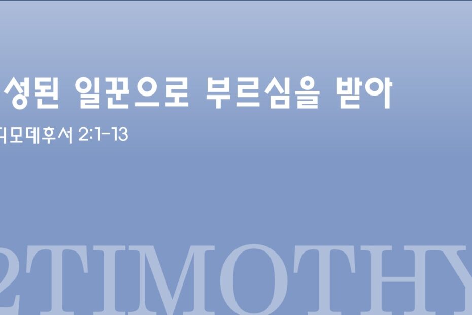 제목: 충성된 일꾼으로 부르심을 받아 성경: 디모데후서 2:1-13 설교: 박상도 목사