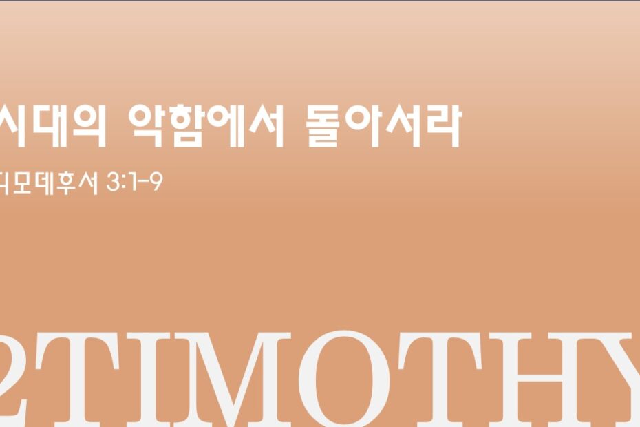 제목: 시대의 악함에서 돌아서라 성경: 디모데후서 3:1-9 설교: 박상도 목사