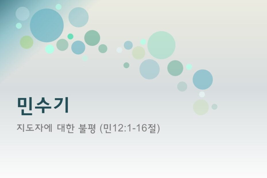 제목 : 지도자에 대한 불평 성경 : 민수기 11:1-16절 https://sheffieldkoreanchurch.org/wps/sermon/2019_08_18_sermon.mp3