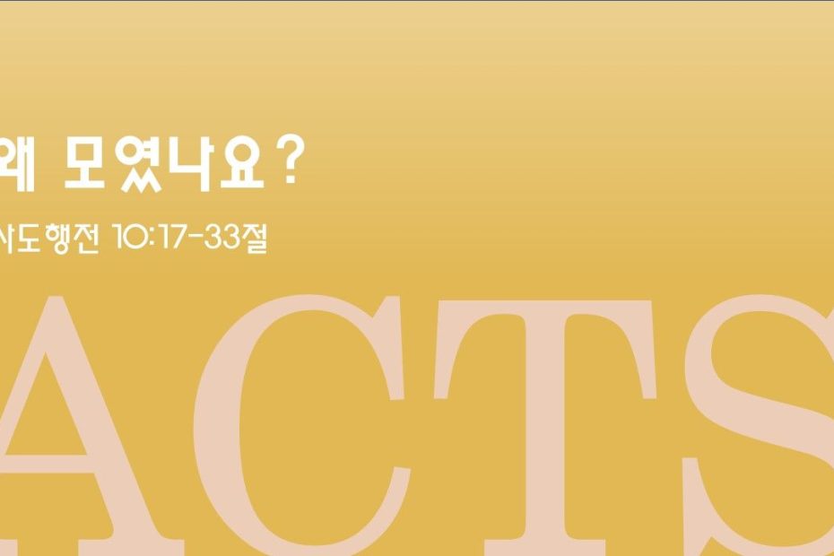 제목 : 왜 모였나요? 성경 : 사도행전 10장 17-33절 설교 : 박상도 목사