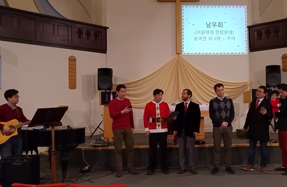 2016년 성탄발표회 – 남우회 – 저들 밖에 한밤 중에 출연 : 송국현, 박상도, 정덕희, 박정현, 엄태희, 전상우 기타반주 : 김차니