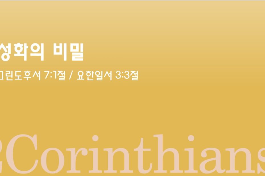제목 : 성화의 비밀 성경 : 고린도후서 7:1절 / 요한일서 3:3절 설교 : 박상도 목사