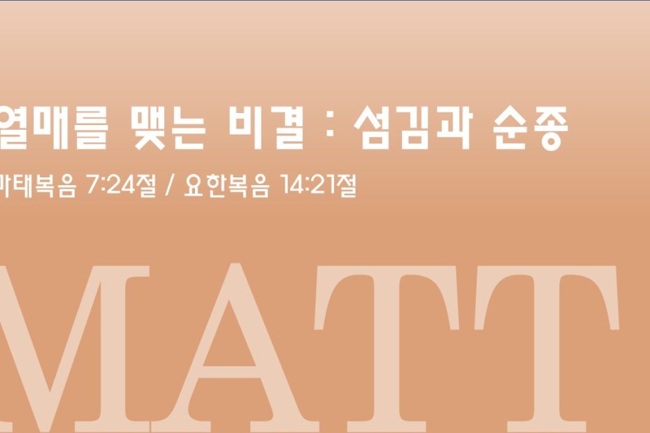제목 : 열매를 맺는 비결: 순종과 섬김 성경 : 마태복음 7:24절 / 요한복음 14:21절 설교 : 박상도 목사