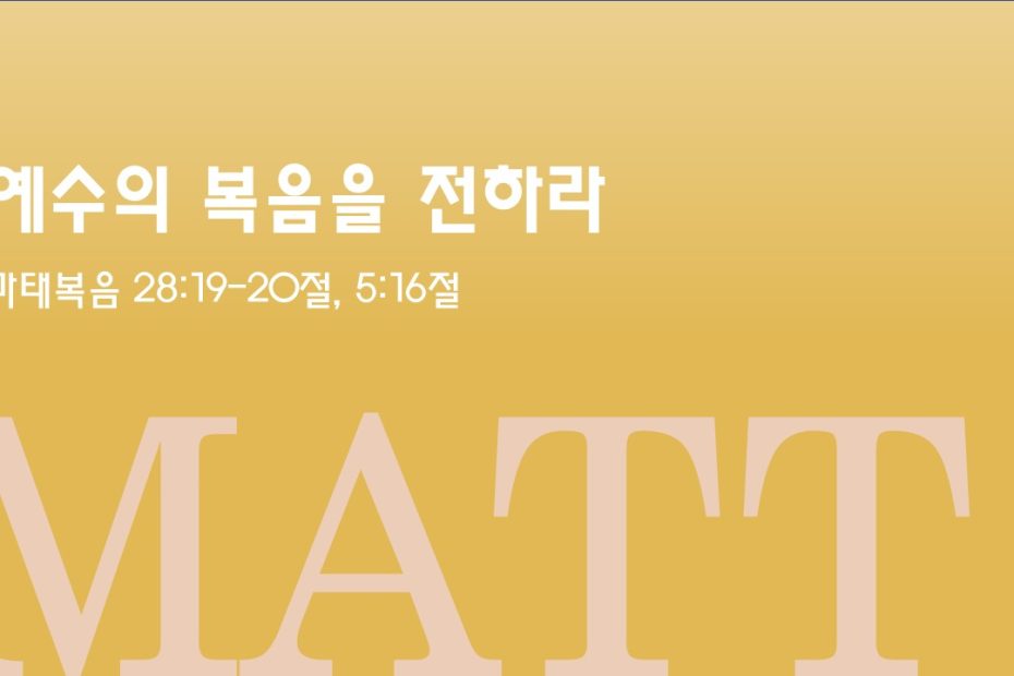 제목 : 예수의 복음을 전하라 성경 : 마태복음 28:19-20절, 5:16절 설교 : 박상도 목사