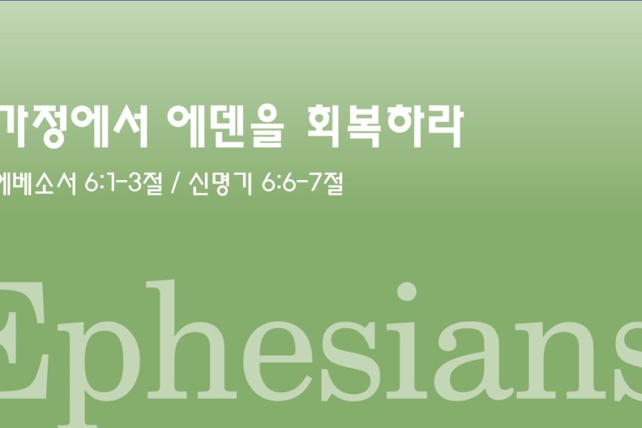 제목 : 가정에서 에덴을 회복하라 성경 : 에베소서 6:1-3절 / 신명기 6:6-7절 설교 : 박상도 목사